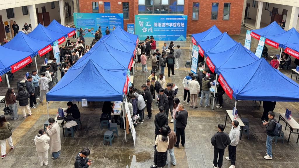 近日,学校安州校区接连迎来两场高规格区域专场招聘会。“智汇台州2025全国高校巡回招聘四川周——绵阳城市学院专场”与浙江省海盐县“海纳英才・盐途有你”2025年赴川高校招聘会相继落地,两场高规格区域专场招聘会的密集登场,为学校2026 届毕业生送上了精准对接、机遇丰富的就业 “双礼包”。