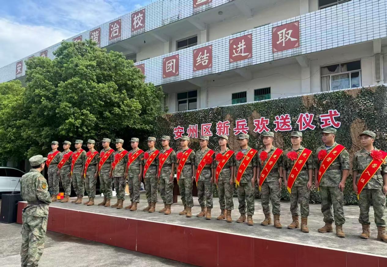 9月16日下午,绵阳城市学院2025年秋季新兵入伍欢送仪式在安州区举行。经过严格选拔的优秀青年,身着崭新戎装,胸戴鲜艳红花,精神抖擞、意气风发,眼神里满是对军营的向往与保家卫国的坚定,其中,一位女兵亦在列,与其他青年一同展现着昂扬风貌。在欢送仪式上,学校征兵工作站站长张恒华带着学校党政领导的嘱托和期望,向同学们致以诚挚问候,勉励大家在军营锤炼成长,要始终坚定理想信念、听党指挥,努力成长为政治过硬、忠诚可靠、能打胜仗的优秀军人。随后,张站长代表学校为每位青年送上定制纪念品并合影留念。
