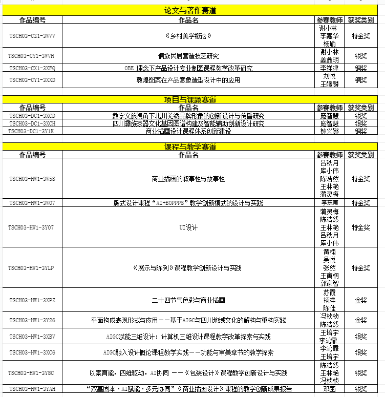 ▲参赛获奖名单