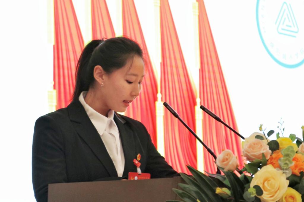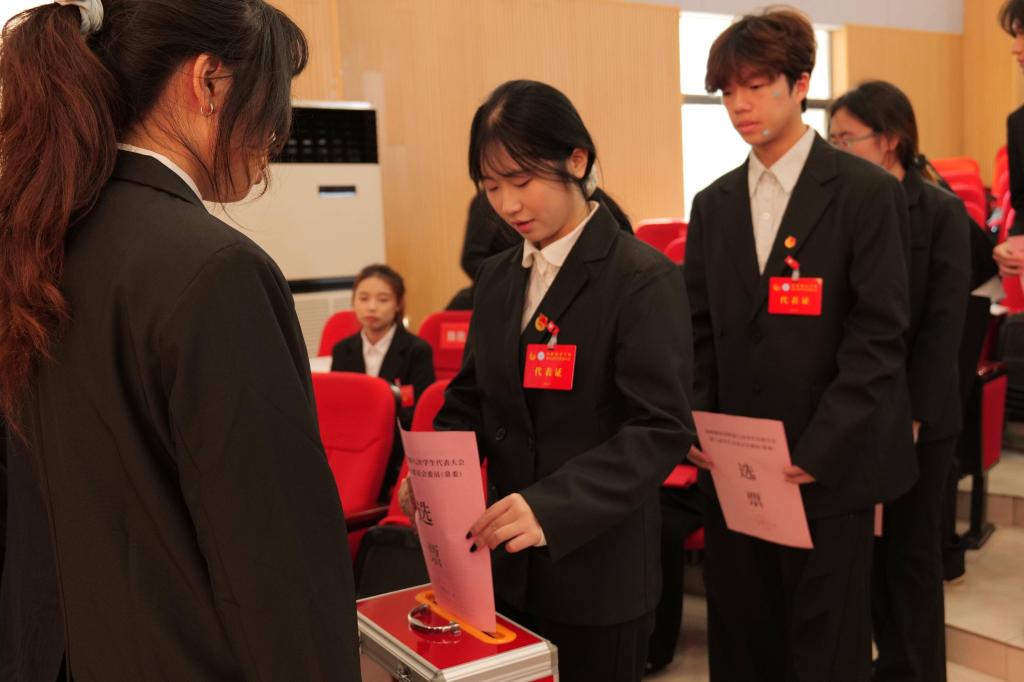 第七届学生会执行主席陈晓玲作为上届学生会代表在大会上作了题为《踔厉奋发启新程,青春笃行向阳生》的工作报告。报告系统梳理了过去一年学生会在思想引领、校园文化活动策划与执行、学生服务支持等多个维度所取得的显著成绩与宝贵经验,并规划了未来一年的工作。学生会将紧密贴合时代发展的步伐,进一步巩固和强化工作根基,积极探索宣传新路径与新方法,着力提升各项活动的品质与影响力,深入推进组织架构与运作机制的革新,同时广泛动员和凝聚全体同学的智慧与力量,共同为学校的发展大局注入强劲的青春动能。