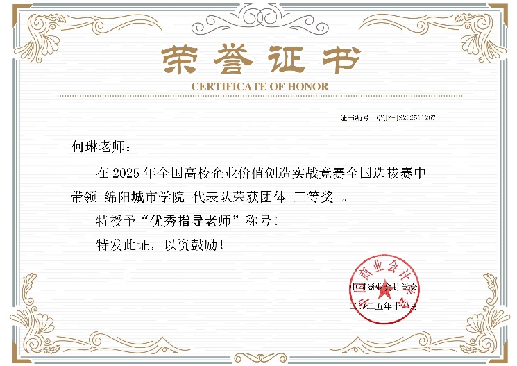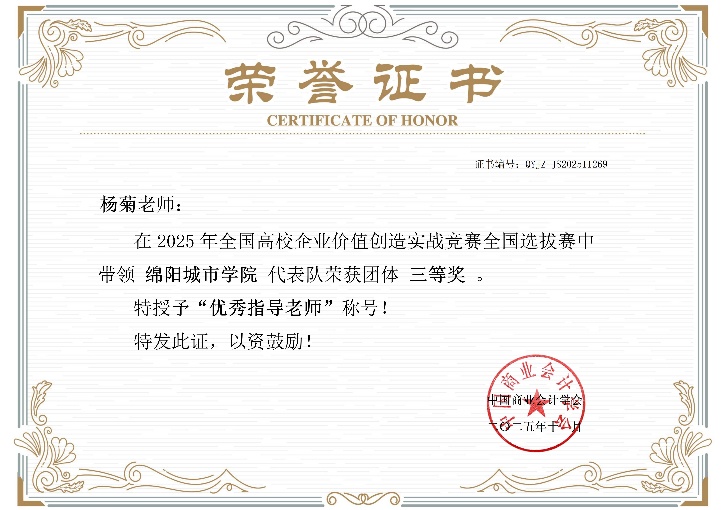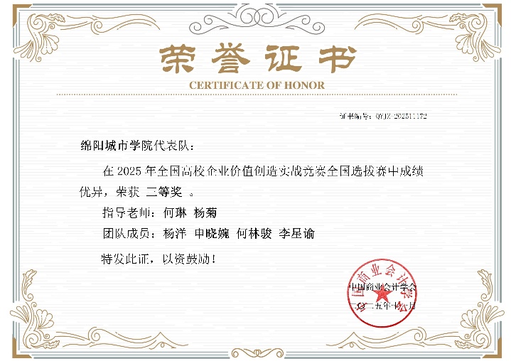 2025年 11月29日 全国高校企业价值创造实战竞赛全国选拔赛成绩揭晓。在此项全国性高水平学科竞赛中,由我校财务管理、金融工程、金融科技、工商管理等多个专业学生首次“跨专业联合组队”的2支参赛队伍,在何琳、杨菊两位教师的精心指导下,与 全国201所高校、371支参赛队伍、1400多名参赛学生中, 凭借出色的跨学科知识融合与协同实战能力,经过激烈角逐,最终双双荣获“全国选拔赛三等奖”,实现了我校在该赛事中的重要突破!