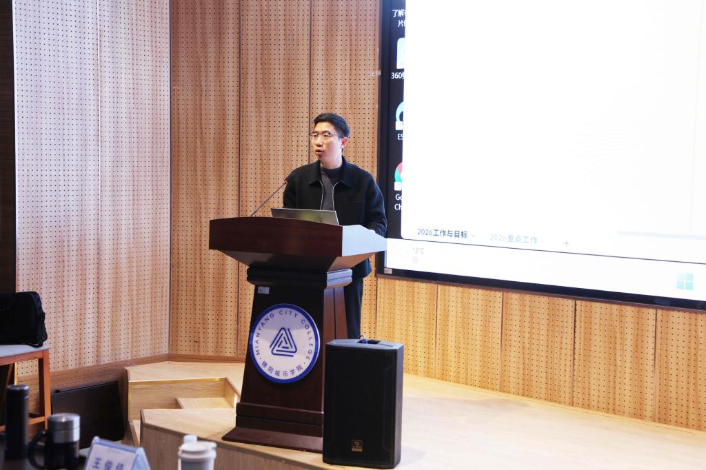校长助理钟磊聚焦未来城市中心建设,详细解读了其作为教学与创新实践综合载体的核心定位、建设内容及年度目标,并同步明确了学生工作未来以分院制为主线的改革方向。