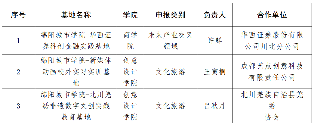 绵阳城市学院2026年省级大学生校外实践教育基地立项名单