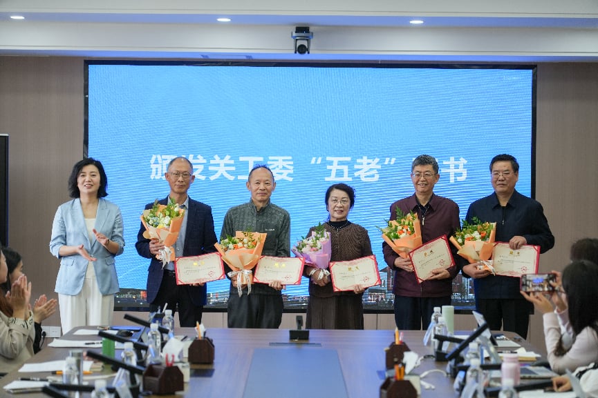 学校党委书记王俊佳,党委副书记、关工委主任李小荣分别为关工委“五老”颁发聘书。